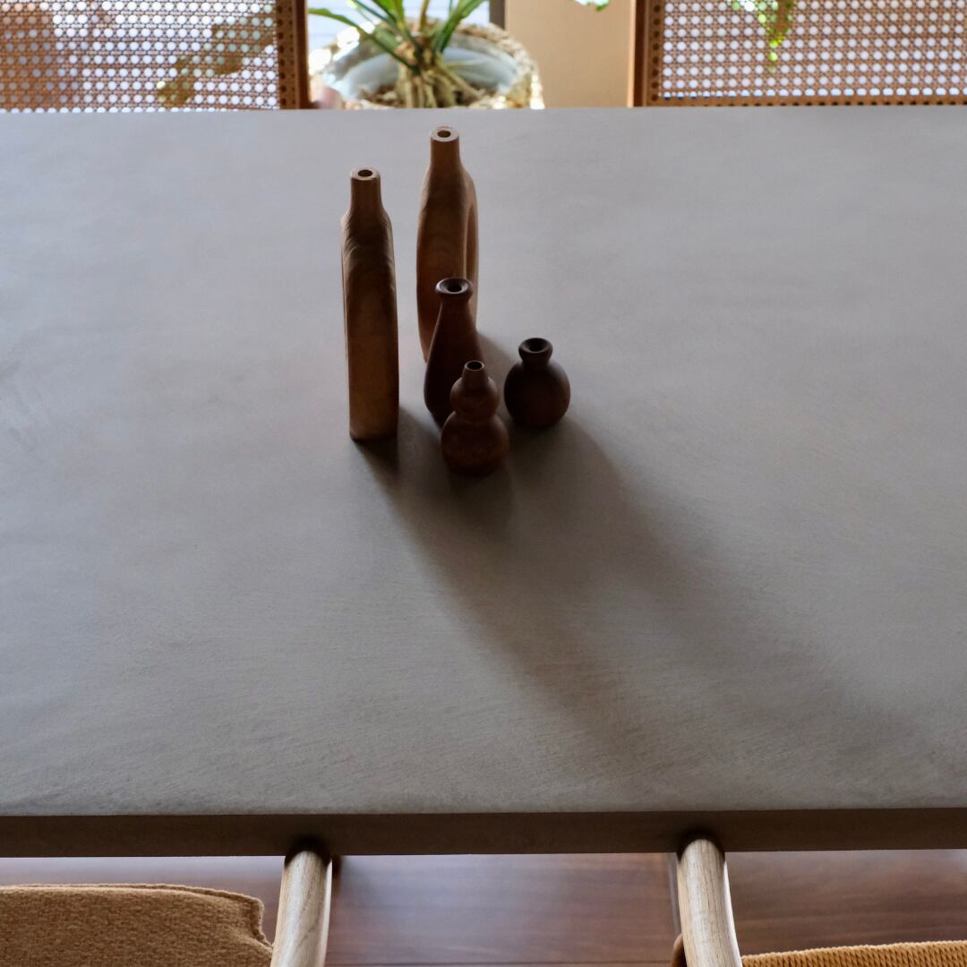 モールテックスとオーク材は、ともに使い込むほど表情が深まり、時間とともに味わいが増していく素材。