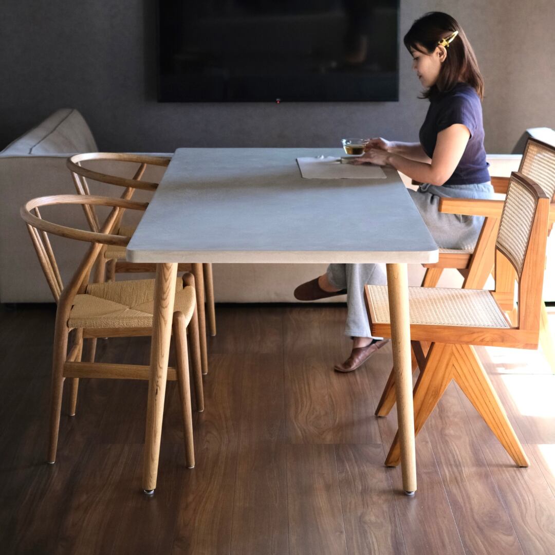 上質な天然素材と、余分な装飾を削ぎ落としたシンプルなデザインにこだわり、丁寧に仕上げたダイニングテーブルです。