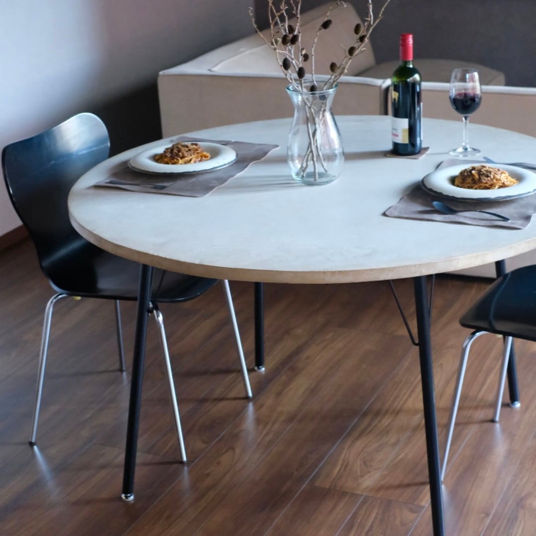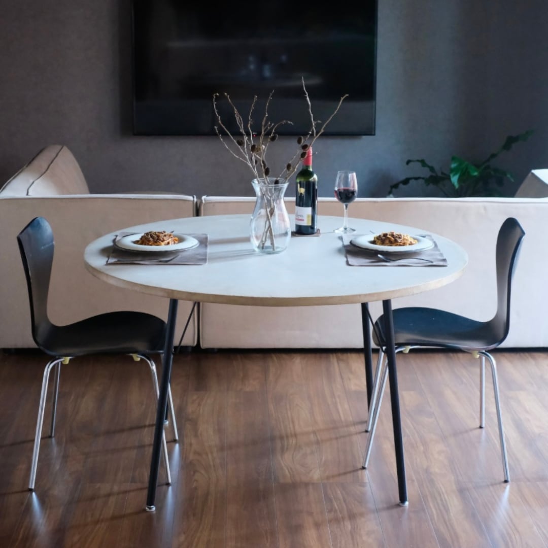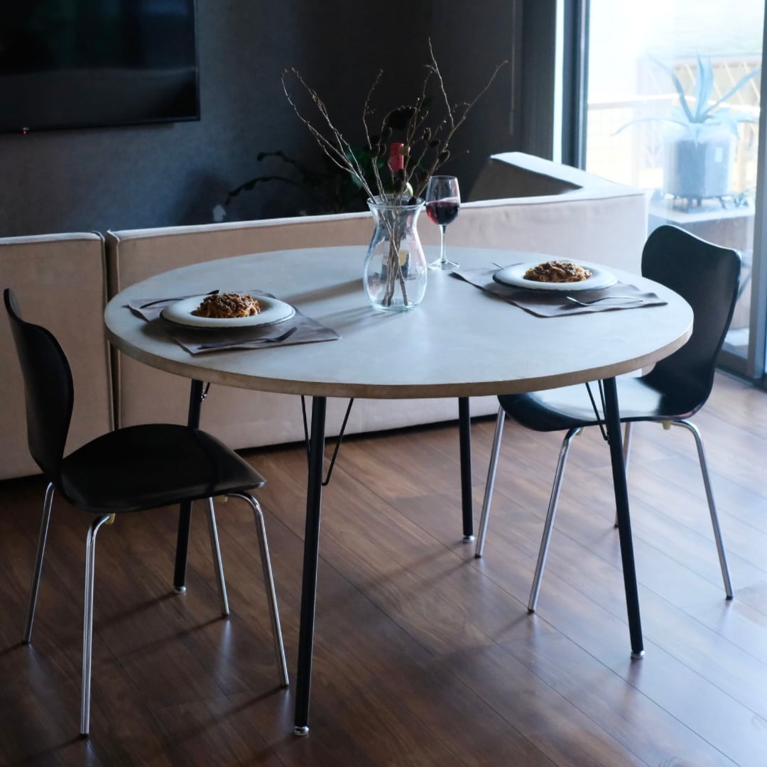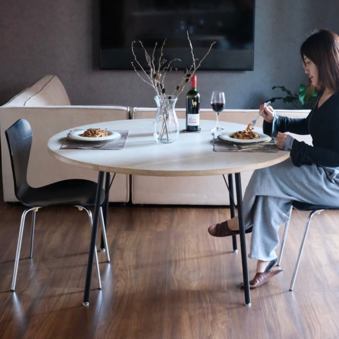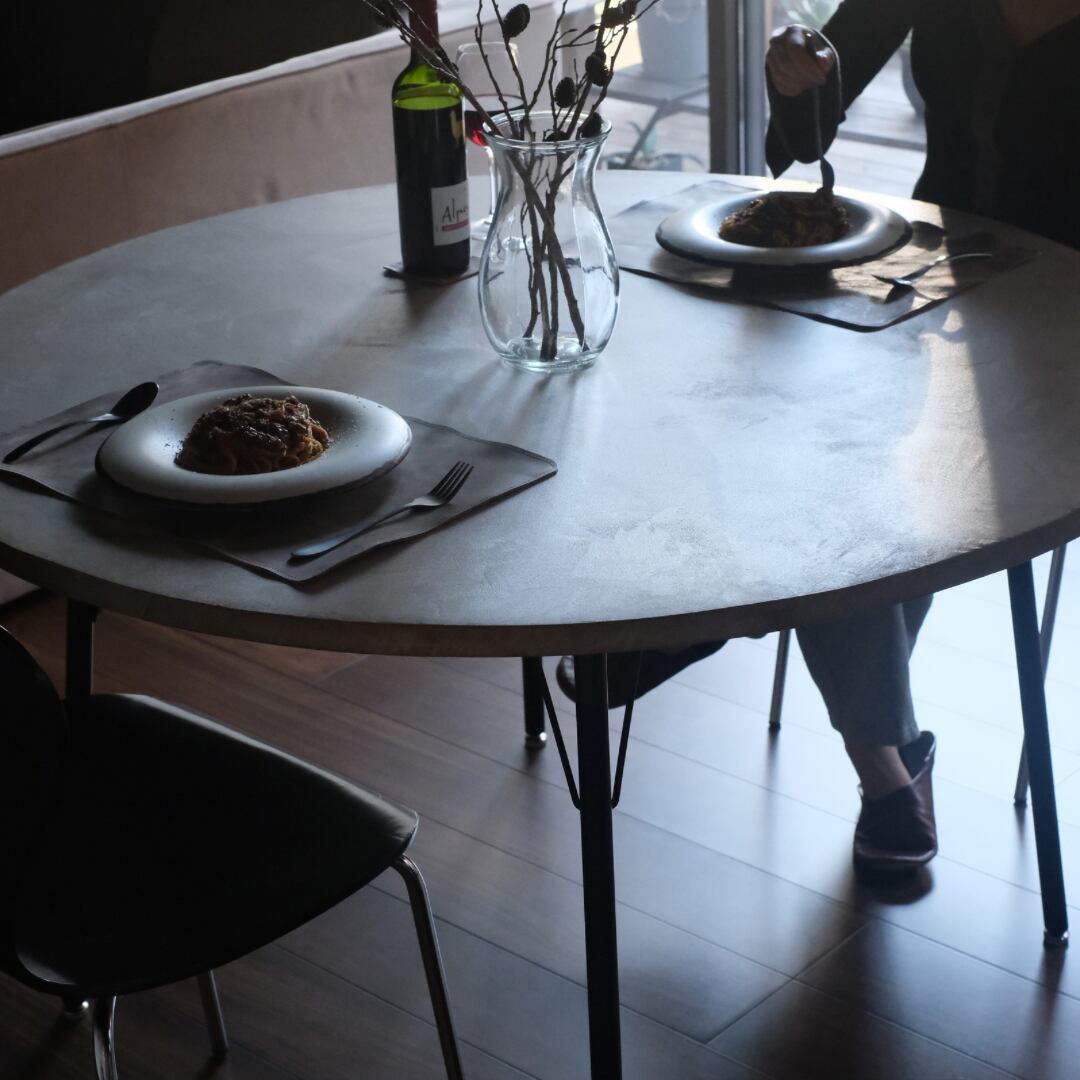 丸型デザインとスリムでスタイリッシュなテーブル脚のラウンドテーブルです。